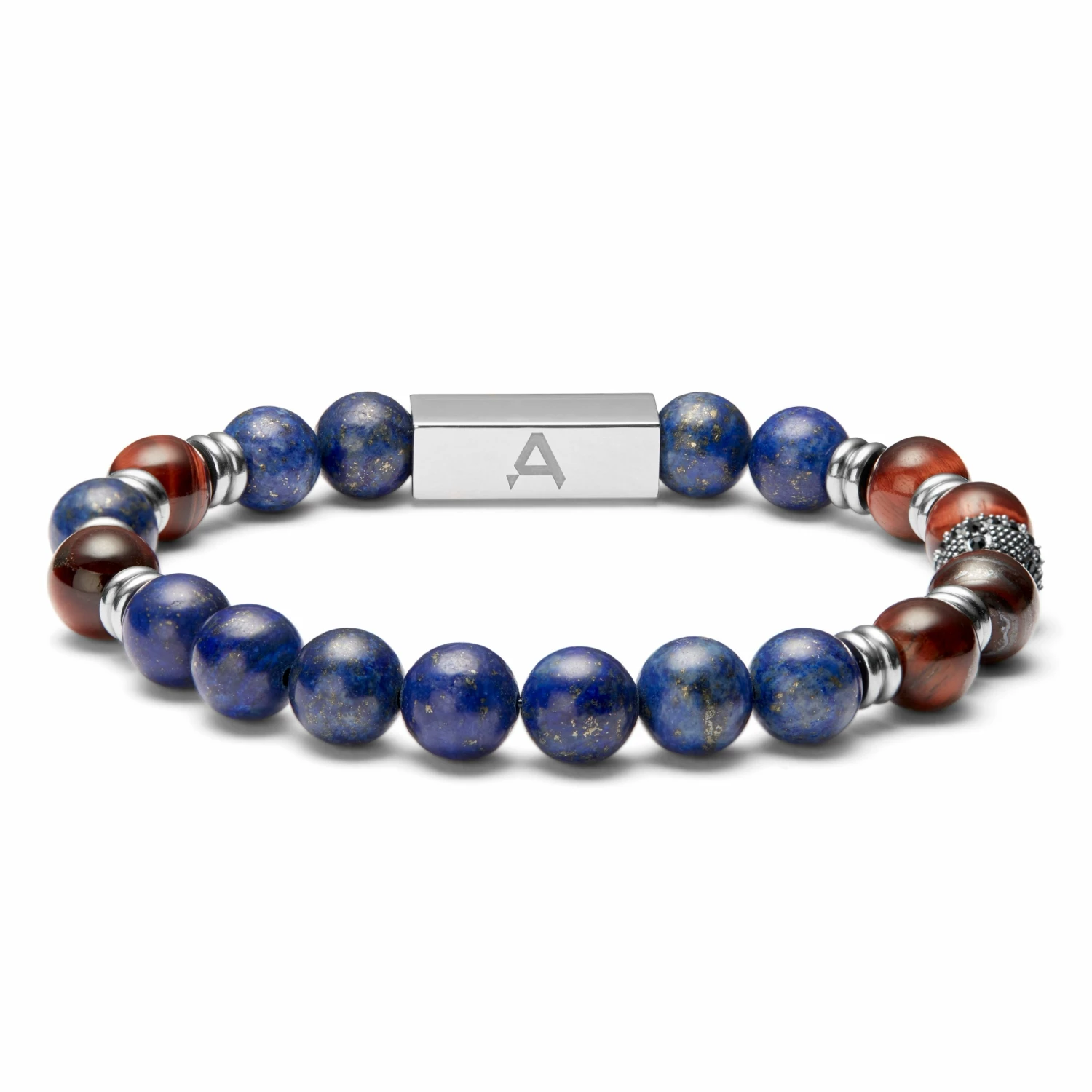 With a combination of Lapis Lazuli and Red Tiger’s Eye stone beads, this bracelet is designed to echo the mystery of the ocean with an easy-to-wear style. Ideal for casual or dressed-up attire.