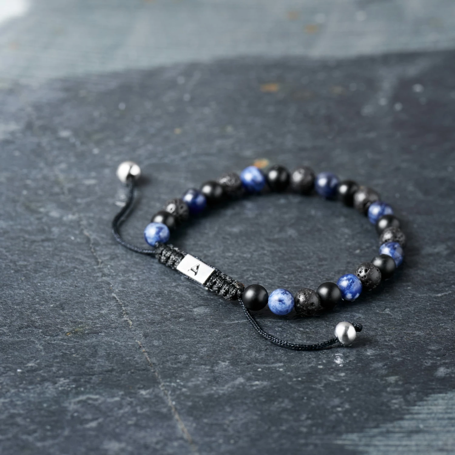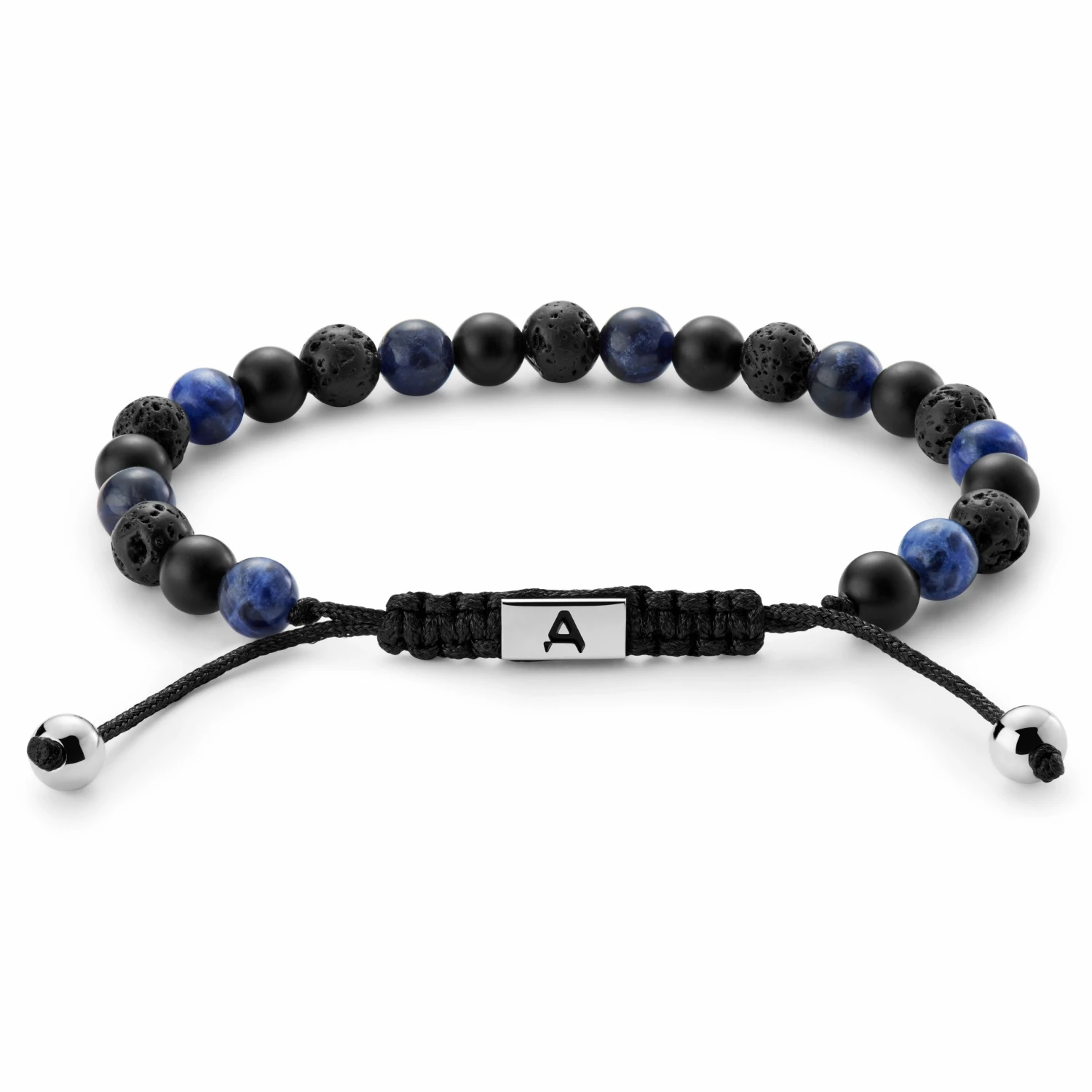 The 1/4″ beads on this men’s bracelet are threaded onto a strong nylon rope and closed with a braided lock featuring the Arkai logo.