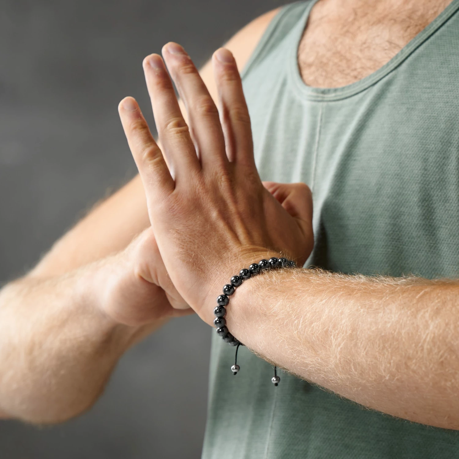 Whether it’s the stone’s association with ancient warriors, the centering effect proclaimed by eastern philosophers, or simply its masculine dark-grey hue and eye-catching shine; this hematite men’s bracelet is a worthy companion on your path to self-improvement.