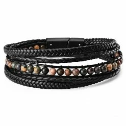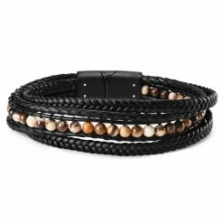Lucleon Naxos | Black Braided Leather & Picasso Stone Bracelet