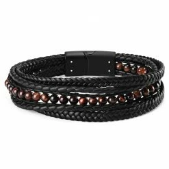 Lucleon Naxos | Black Braided Leather & Red Tiger’s Eye Bracelet