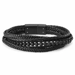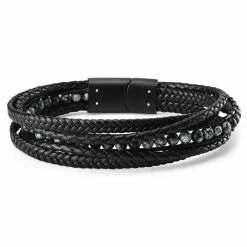 Lucleon Naxos | Black Braided Leather & Frosted Black Agate Bracelet