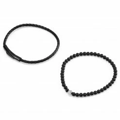 Lucleon All Black Leather & Natural Stone Bracelet Set