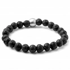 Lucleon Black Lava Rock & Stainless Steel Bracelet