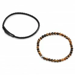 Lucleon Black Leather & Natural Stone Bracelet Set