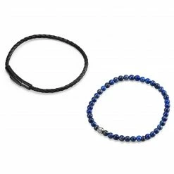 Lucleon Black Leather & Marine Blue Stone Bracelet Set