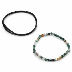 Lucleon Black Leather & Green-Tone Stone Bracelet Set
