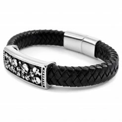Fort Tempus Black Braided Leather Strap & Stainless Steel Skull Bracelet