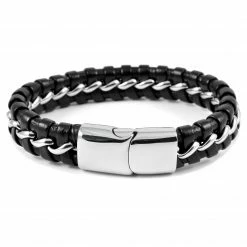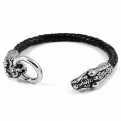 Fort Tempus Black Braided Leather Strap & Stainless Steel Snake Motif Bracelet