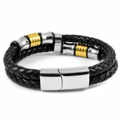 Fort Tempus Black Braided Leather Rope & Steel Double Bracelet