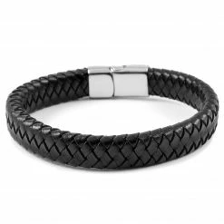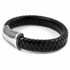 Fort Tempus Black Leather & Stainless Steel Intertwining Bracelet
