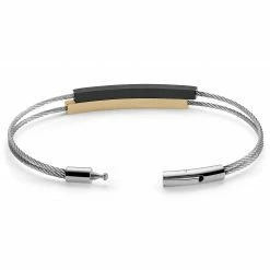 Lucleon Black & Silver-Tone Stainless Steel Cable Bracelet