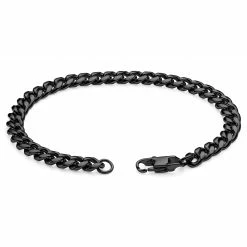 Lucleon 6mm Black Stainless Steel Curb Chain Bracelet