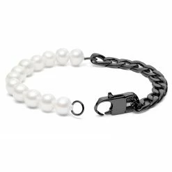 Lucleon Amager | Gunmetal Stainless Steel Curb Chain & Pearl Bracelet