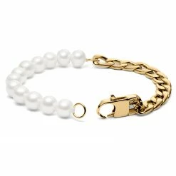 Lucleon Amager | Gold-Tone Stainless Steel Curb Chain & Pearl Bracelet
