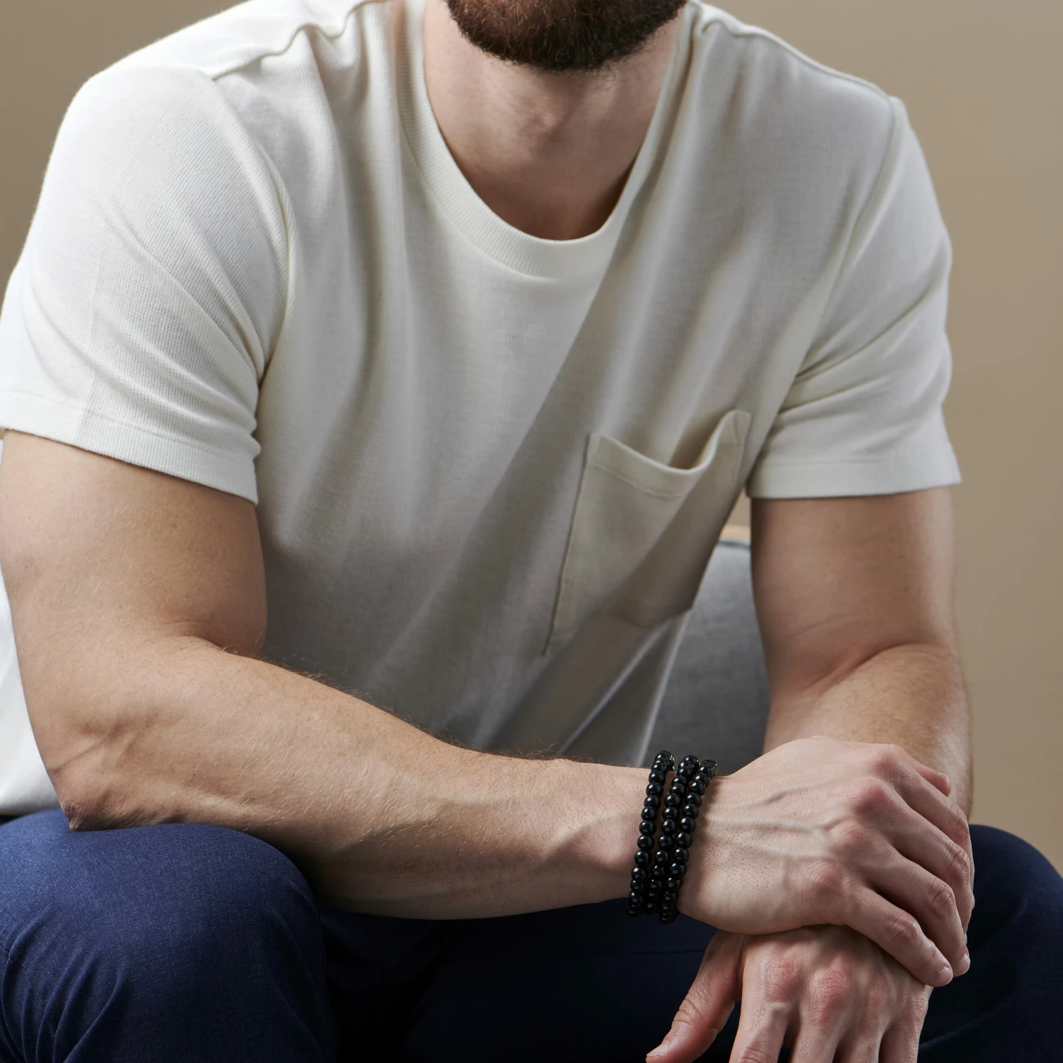 If you’re looking for a little flexibility in your accessories, then check out this awesome 3-piece bracelet set. Each features shiny painted black wooden beads on a durable silicone rubber band, so you can wear one, two, or all of them at a time. It’s up to you.