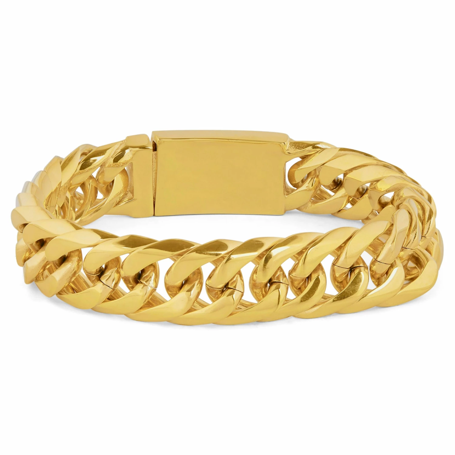 Features stainless steel construction and a classic chain design. The strong box clasp can easily handle the bracelets impressive girth.