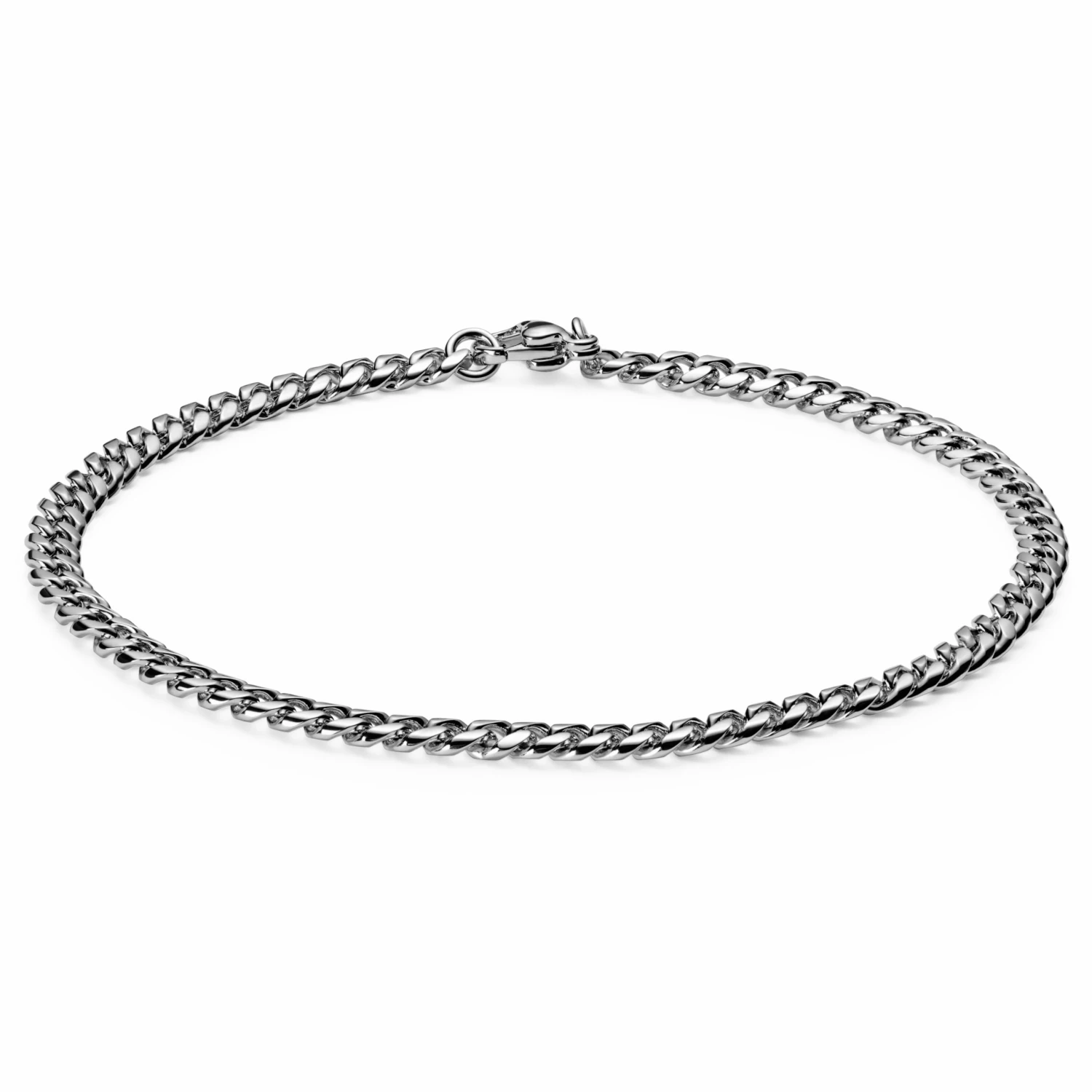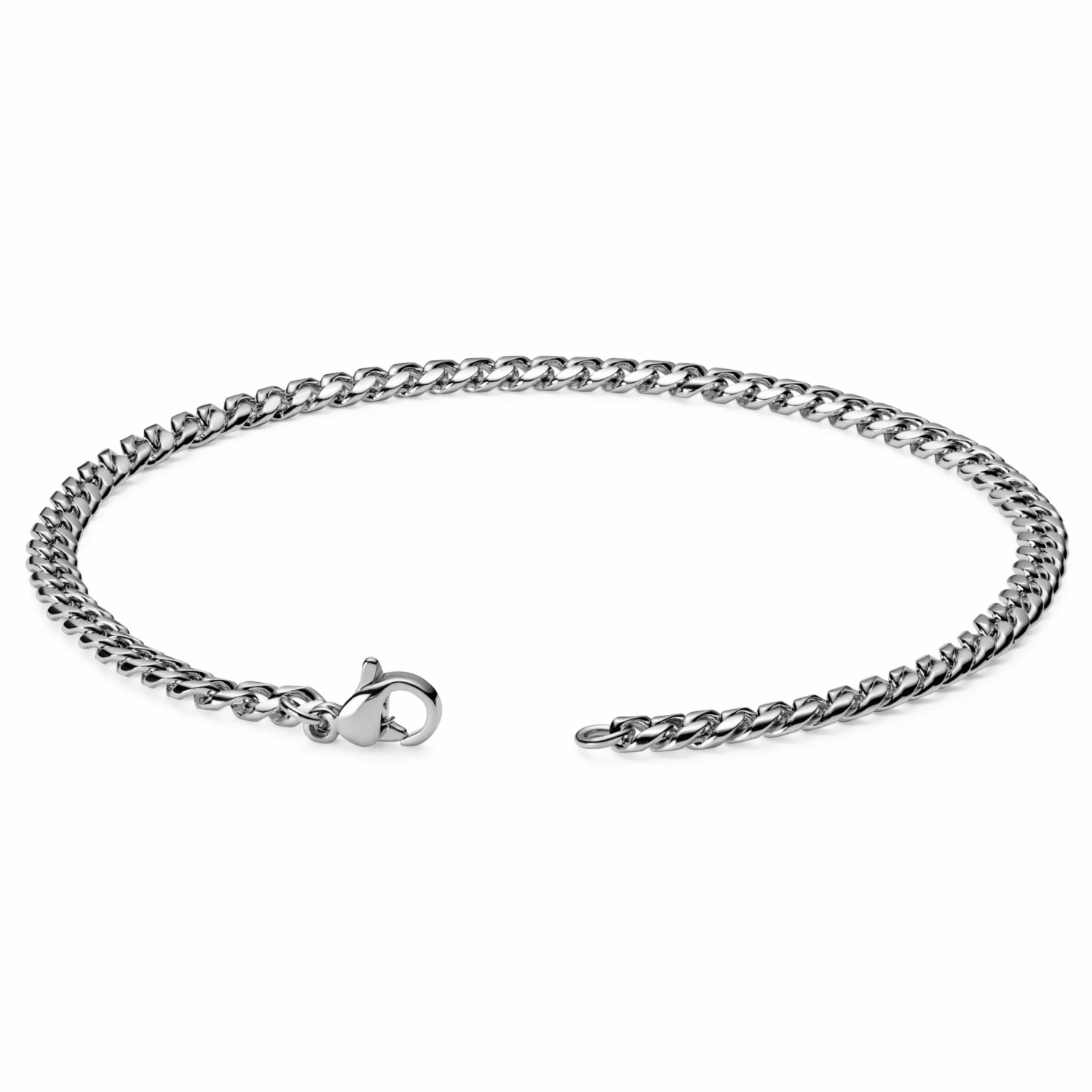This 1/8″ (3 mm) silver-tone curb link chain bracelet adds a touch of sophistication to your outfit.