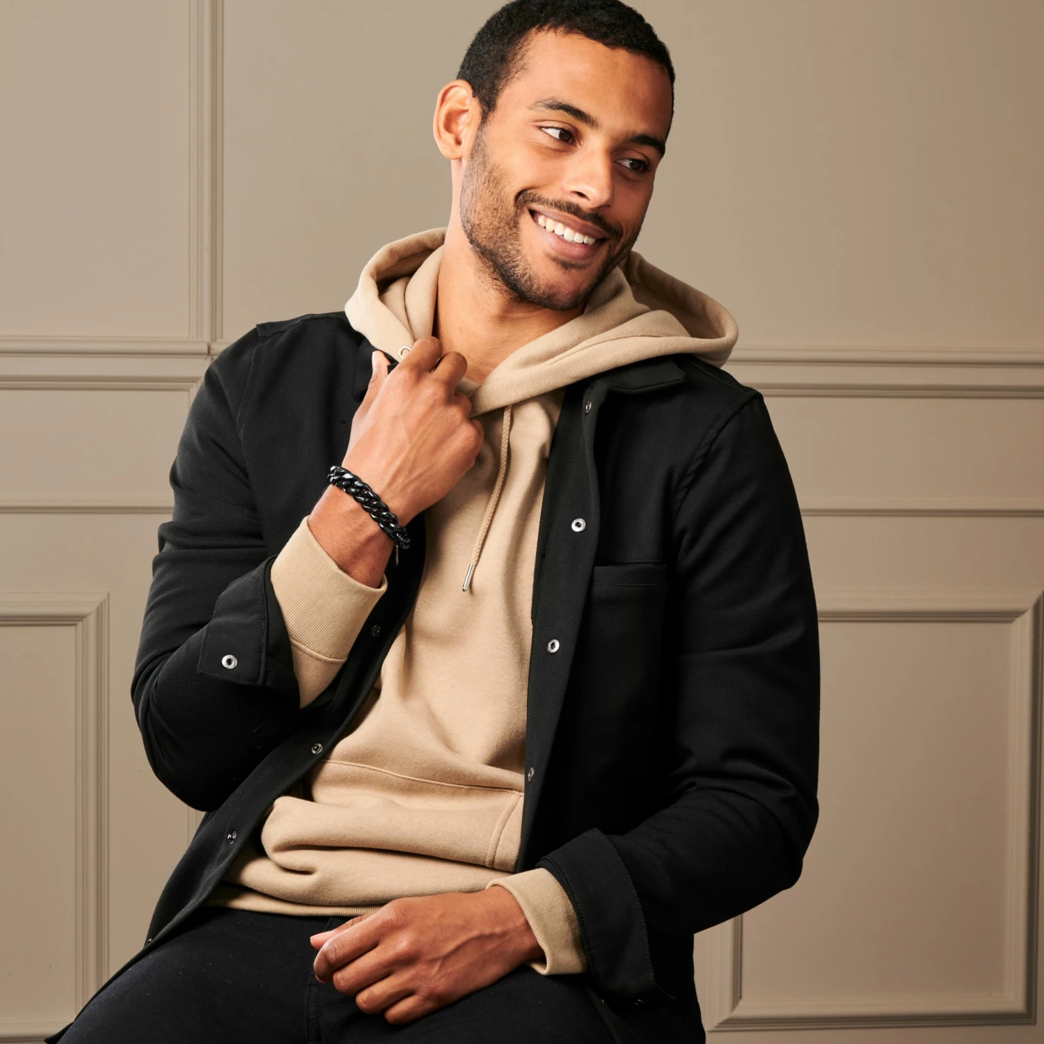 Shiny and strong, this men’s chain bracelet will match just about anything in your closet.