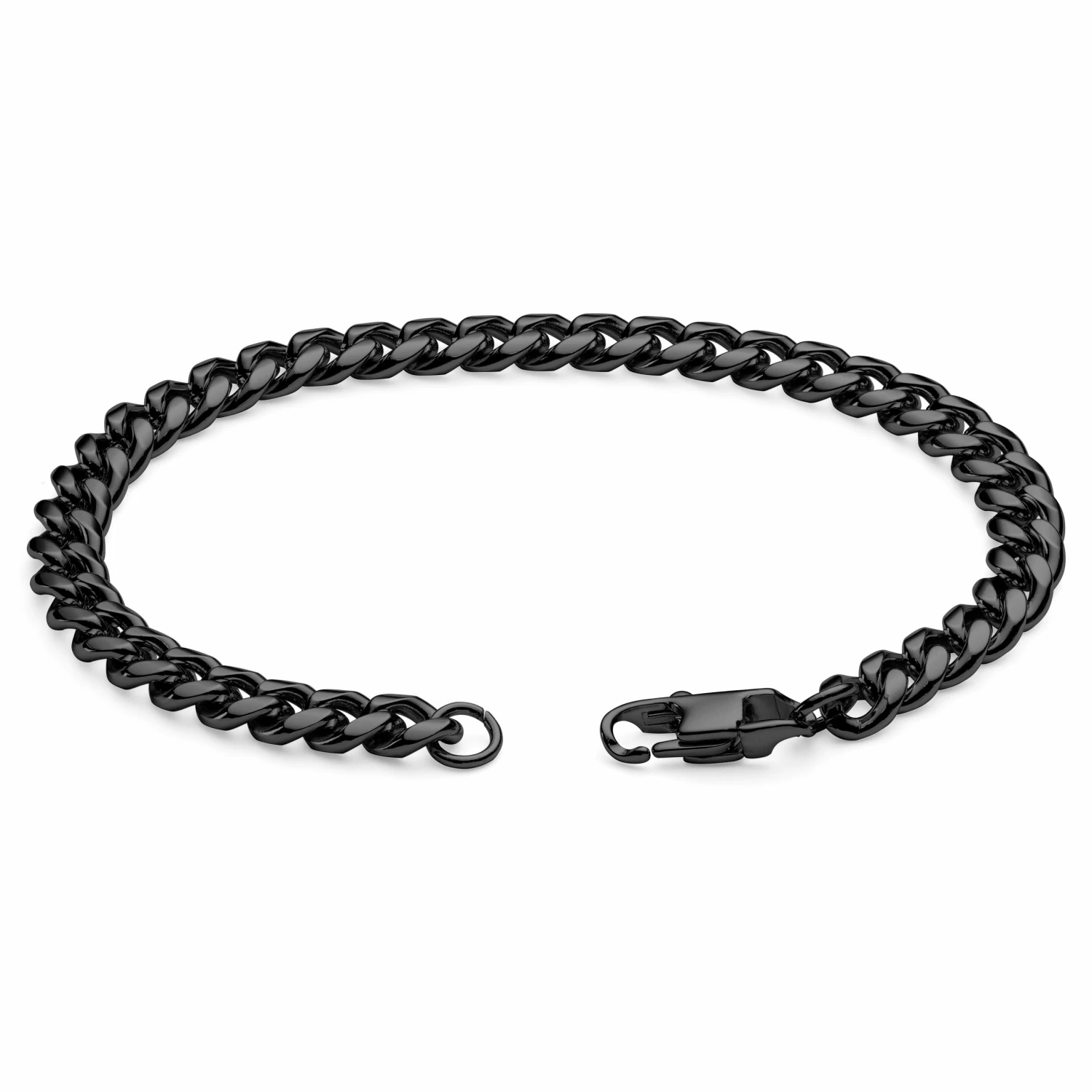 Simple and just a little bit edgy, this sleek black bracelet is made from durable stainless steel chain links. Finished with a secure lobster lock to keep it on all day long. Comes in an understated 6mm width.