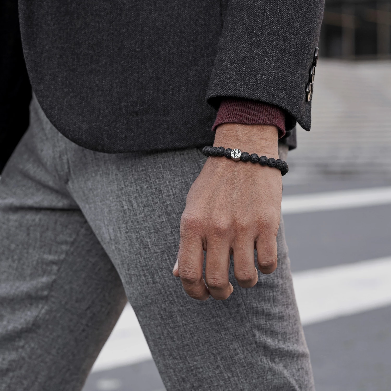 Danish brand Lucleon offers this cool lava stone bracelet. Includes 1 steel bead featuring Lucleon’s logo. Wear it with a wide array or casual or formal looks.