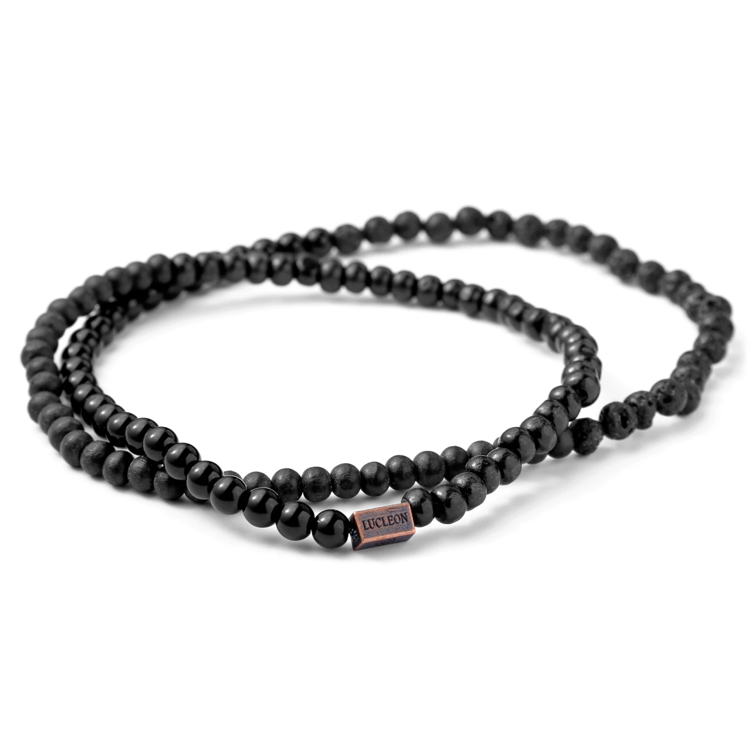 Danish brand Lucleon does it again. This stylish black stone bracelet trio really packs a punch style-wise. Features Adamas, lava, and wooden beads. Includes a single, rectangular signature bead. Wear with practically any casual or formal look.