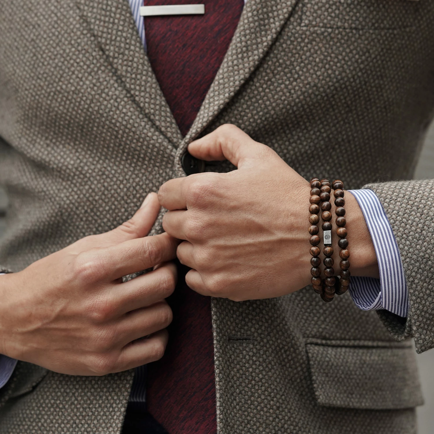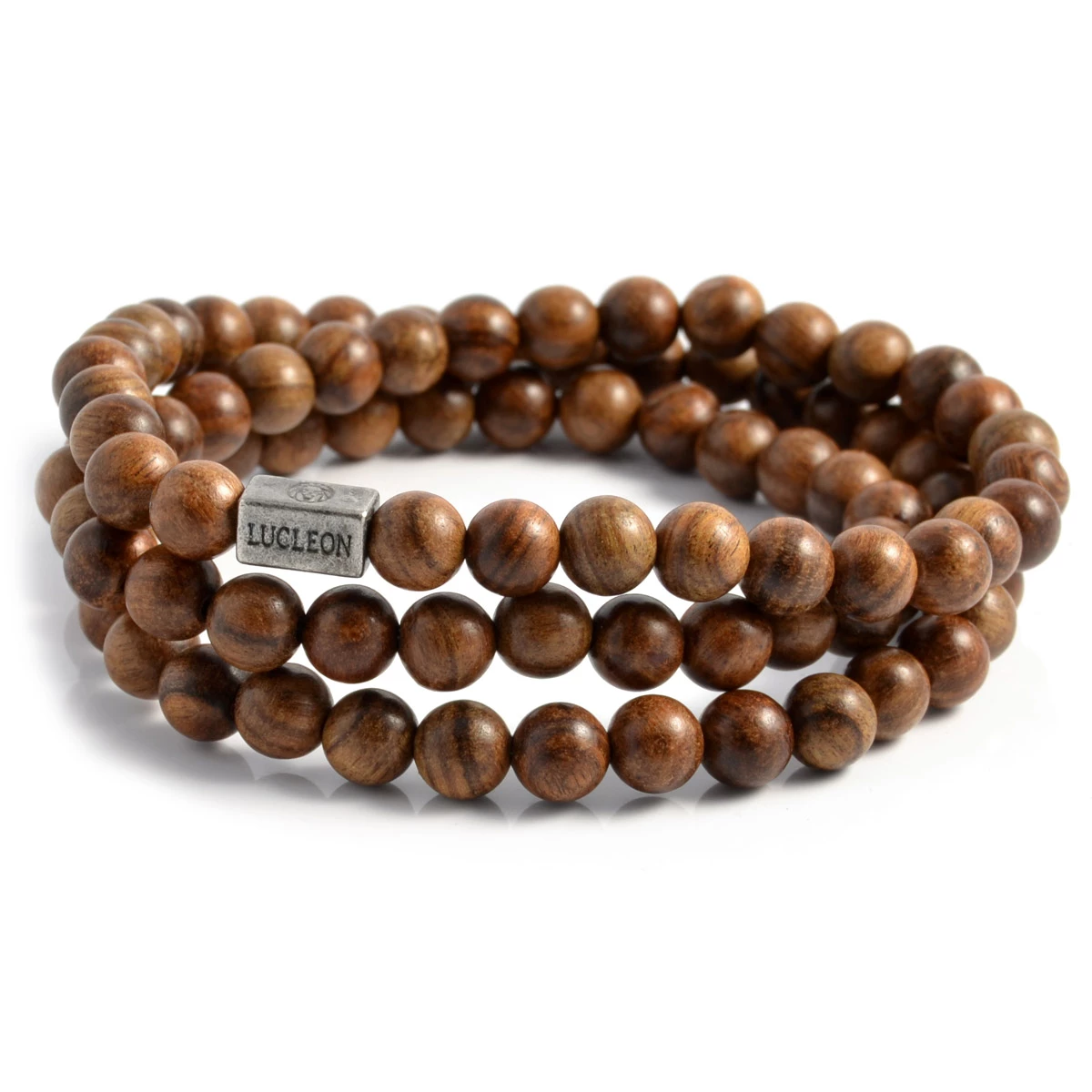 With a unique triple twist design, this bracelet by Lucleon in Denmark features gorgeous pear tree wood beads polished to highlight the wood’s natural grain. These beads are threaded onto a triple-strength silicon rubber band, so you don’t have to worry about breakage. Finished with a beautiful metal pendant featuring the Lucleon logo.