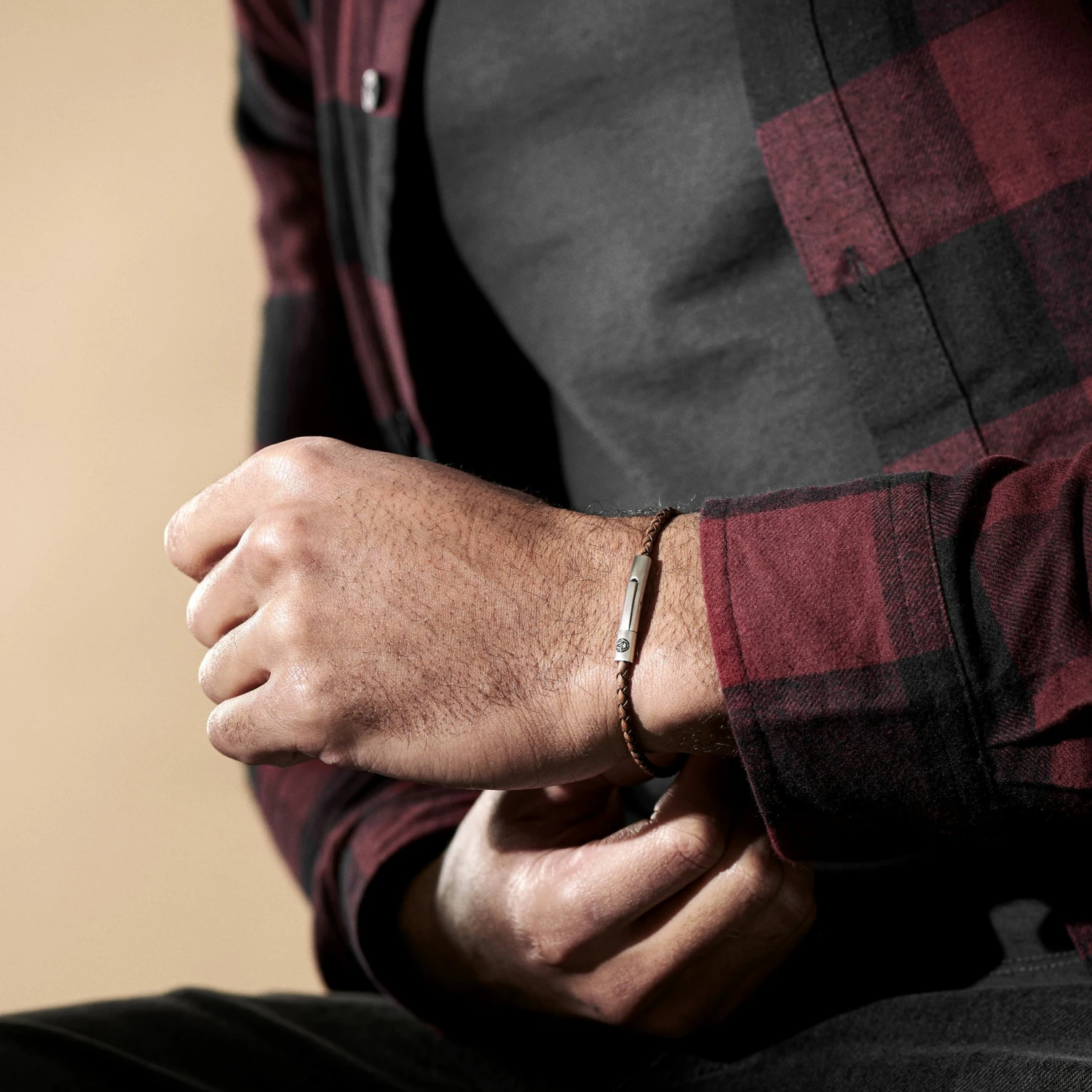 The perfect all-rounder, this thin genuine leather bolo weave men’s bracelet serves equally well as an element in a stack, a companion to a watch, or alone as a subtle highlight.