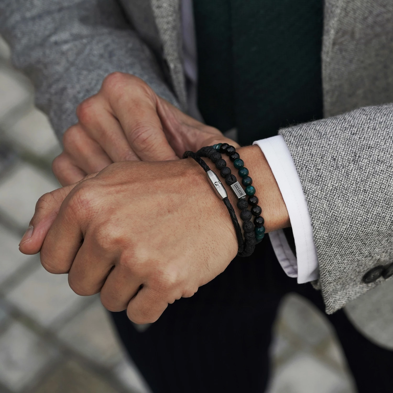 The third keeps it simple with a classic braided black leather band and durable 316L stainless steel magnetic lock.
