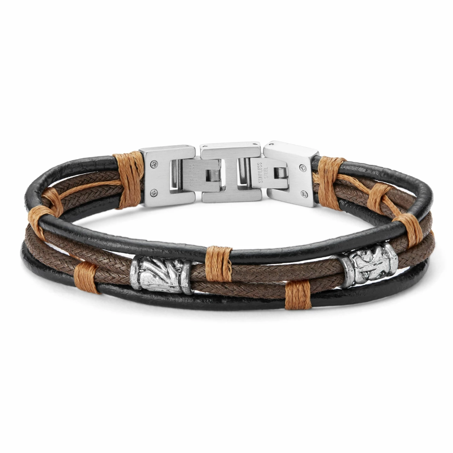 This brown and black leather bracelet matches any outfit. Nice to know that at least one accessory in your collection works with whatever you wear tomorrow.