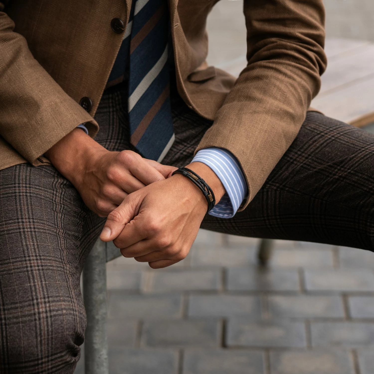 This handsome leather bracelet is designed for everyday wear… no matter where your day takes you. Durable and rugged, but still stylish enough for your suit and tie.