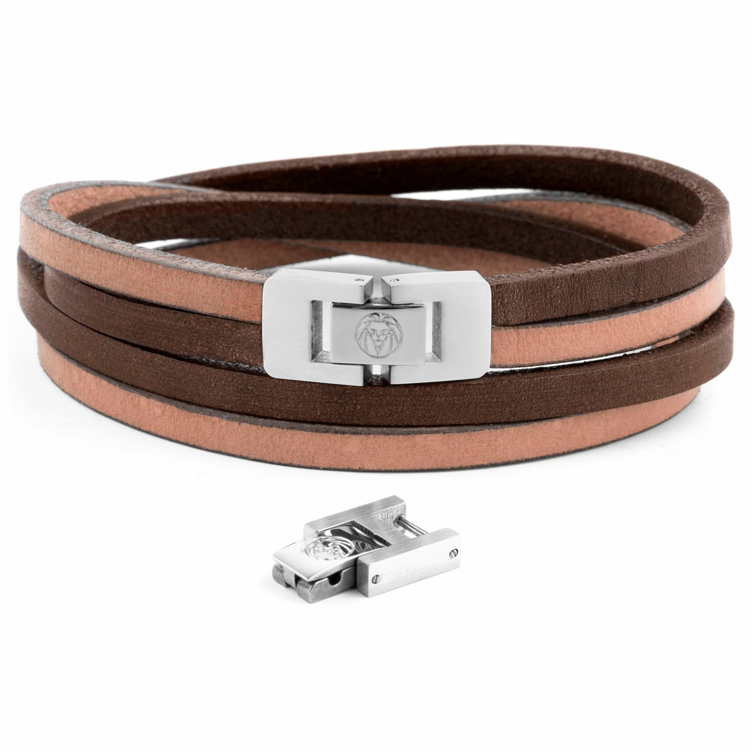 The genuine leather strands are soft and supple, conforming to your wrist without compromising masculinity. Features a silver-toned, stainless steel adjustable lock.