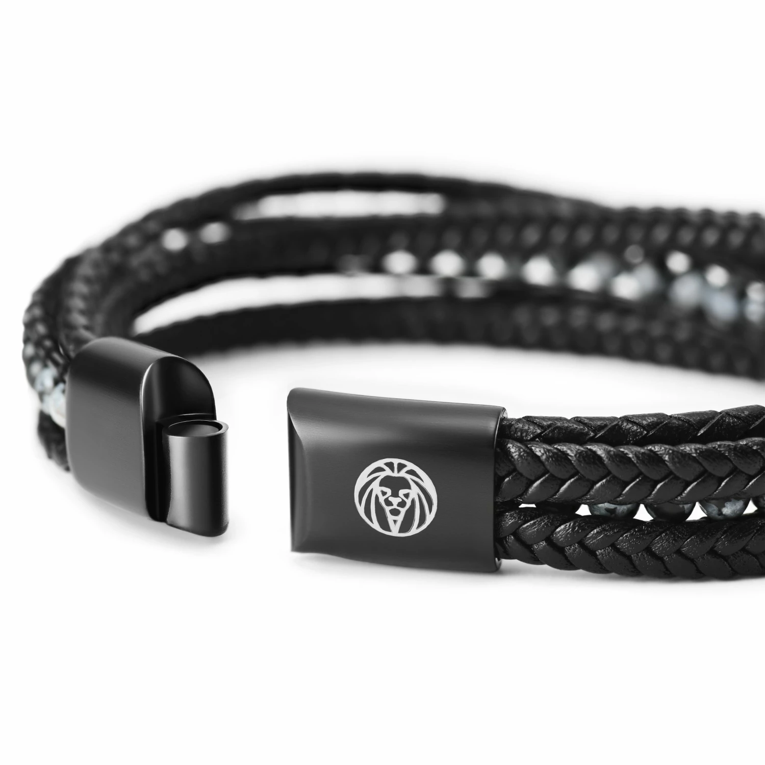 The genuine leather braids are lightweight and comfortable, and the string of beads at the center is woven between two leather bands. This men’s bracelet is secured with a solid, surgical-grade stainless steel magnetic lock featuring the Lucleon logo.