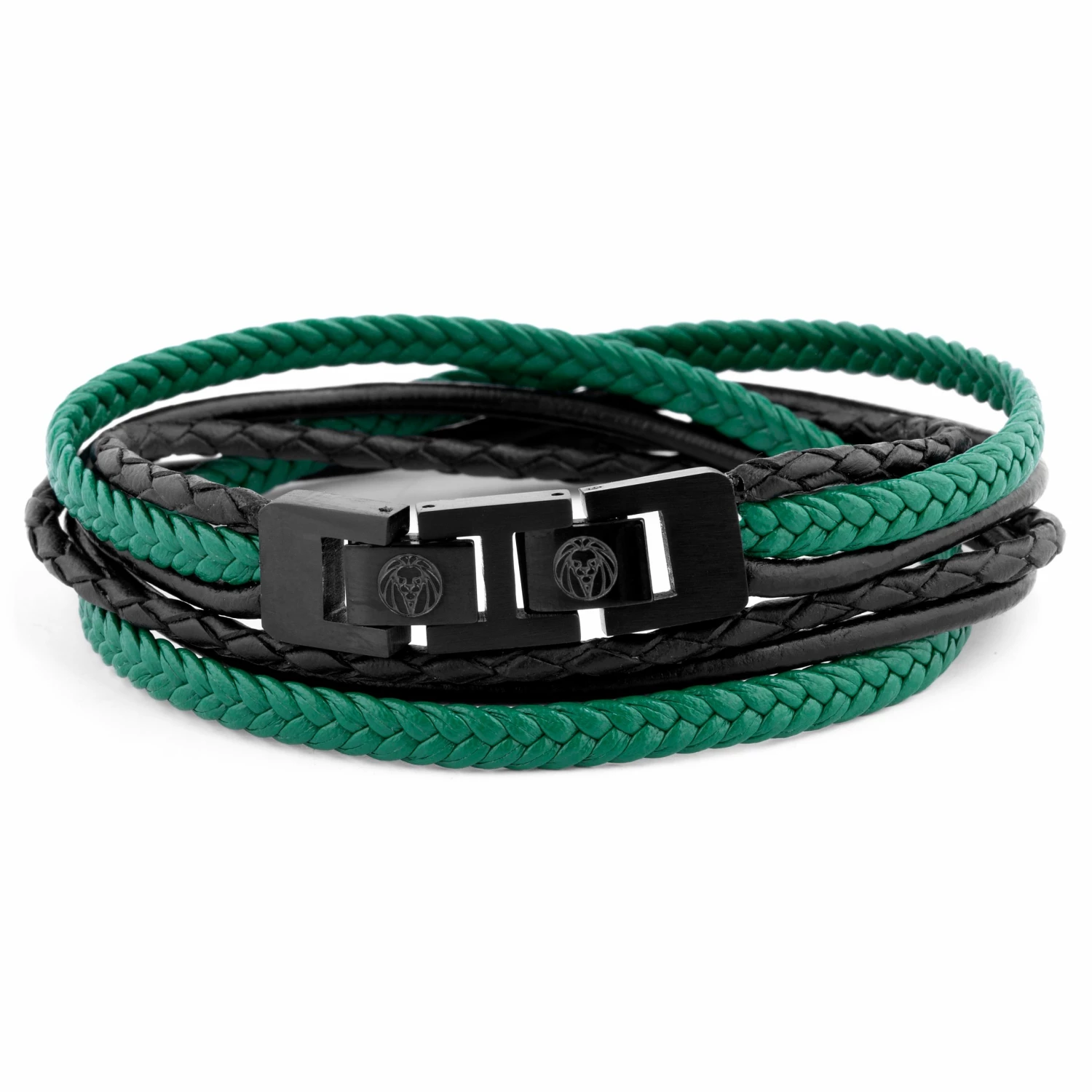 Crafted from top grade leather, this gorgeous black and green double wrap bracelet will enhance any outfit.
