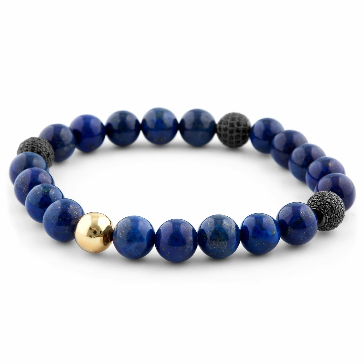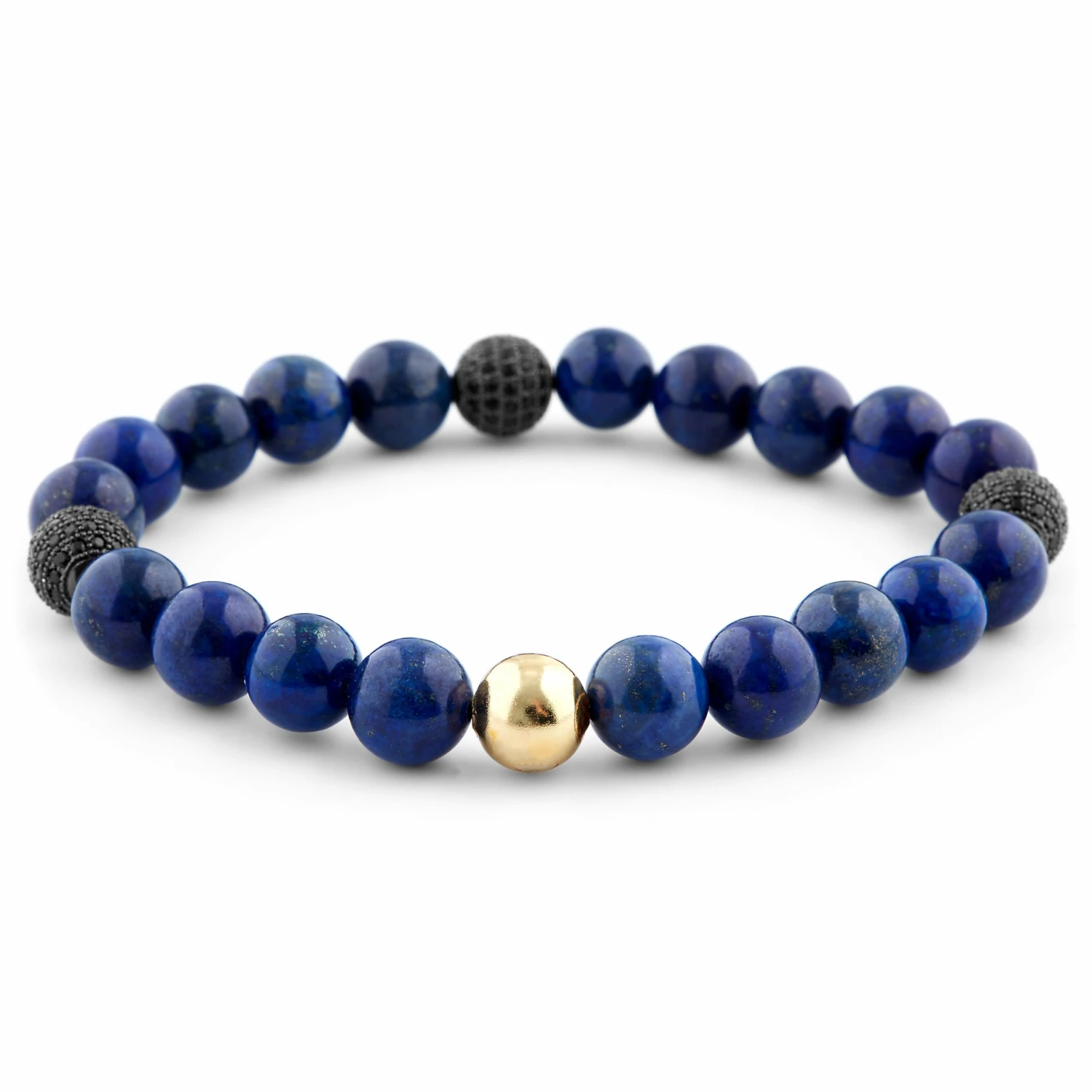 Strong elastic string pulls this lovely piece of lapis lazuli wrist wear together. A splash of gold colored copper and shimmering cubic zirconia beads bring on the wow factor.