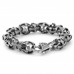 Fort Tempus Black & Silver-Tone Stainless Steel Shield Chain Bracelet