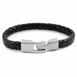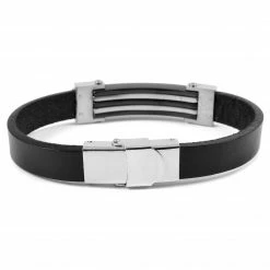 Fort Tempus Soft Black Leather & Stainless Steel Bracelet