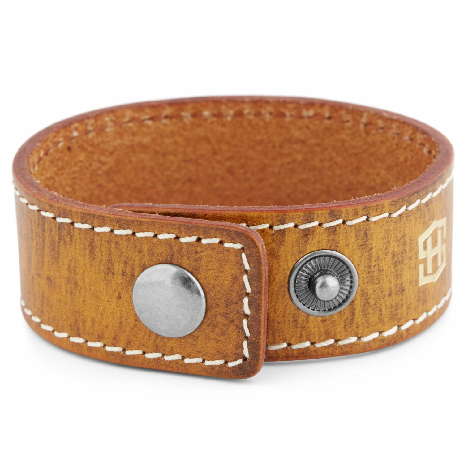 Crafted from soft and supple vegetable tanned leather, this bracelet sits comfortably on the wrist. Adjustable. Features a small gold-toned Salt & Hide logo and white stitching. Ages beautifully with time. Comes in a cotton gift bag.