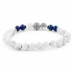 Neshraw White Turquoise, Blue Lapis Lazuli & Black Zirconia Bracelet